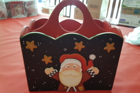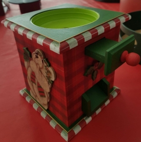 Tem desde porta-guardanapo, coberturas de panetones, toalhas de mesa, aventais – sempre com motivos natalinos – a caixas de madeira pintadas a mão, guirlandas, estandes e chalés.