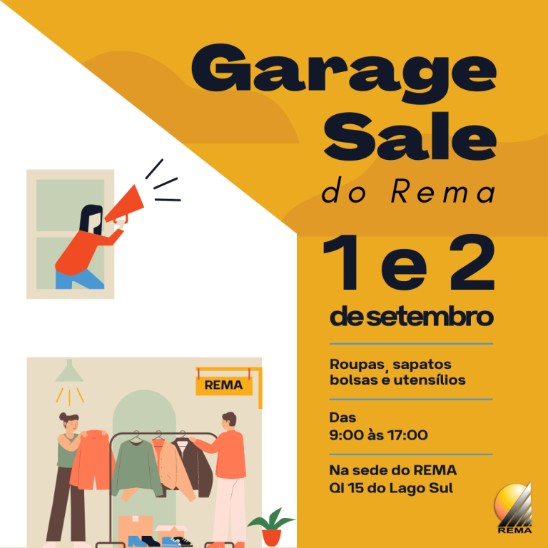 SAVE THE DATE! No começo de setembro teremos mais uma edição da GARAGE SALE do Rema! Marque na agenda: dias 01 e 02/09 (sexta e sábado) você tem um encontro