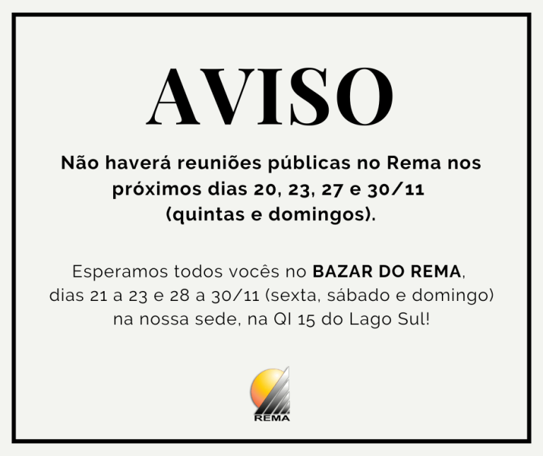Teremos uma breve pausa nas palestras públicas do Rema até o dia 4 de dezembro.