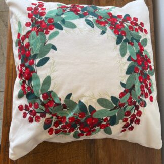 Almofada quadrada branca com cerejas