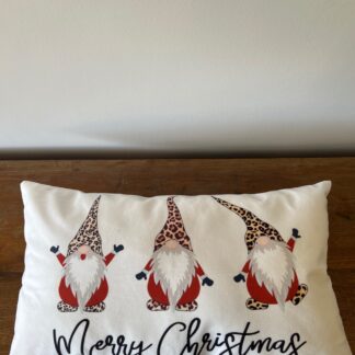 Almofada retangular branca com 3 gnomos