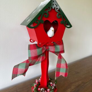 Casa Pássaro Vermelha Telhado Flocos Neve