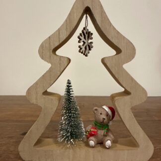 Pinheiro de Madeira com Ursinho Sentado, Árvore e Floco de NeveR$45,00 Comprar
