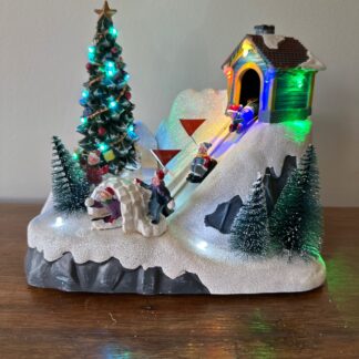 Globo Musical Árvore Cenário Papai Noel com Rena Iluminado