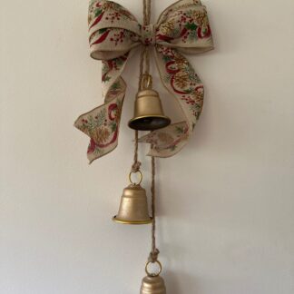 Enfeite Porta 3 Sinos Dourados Laço Fita Pick Pinha Azevinho