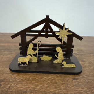 Estábulo Sagrada Familia e animais Gliter Dourado