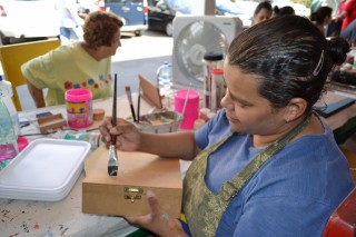 Nos primeiros meses do ano, somente aos domingos, cerca de 100 pessoas, com idade que vai de oito a mais de 80 anos, trabalham na produção das peças. Mas, quando vai chegando perto do Bazar, essa turma se reúne todos os dias. Durante a semana, à noite, porque a maioria trabalha. Sábado e domingo, o dia inteiro.