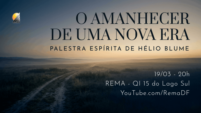 Nesta quinta-feira (19/03), teremos no Rema uma palestra do orador espírita Hélio Blume sobre o tema “O amanhecer de uma nova era”.