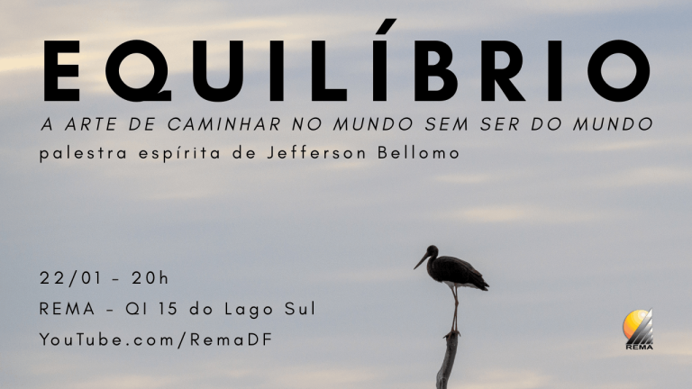 Nesta quinta-feira (22/01), teremos no Rema uma palestra do orador espírita Jefferson Bellomo com o título “Equilíbrio: a arte de caminhar no mundo sem ser do mundo”.